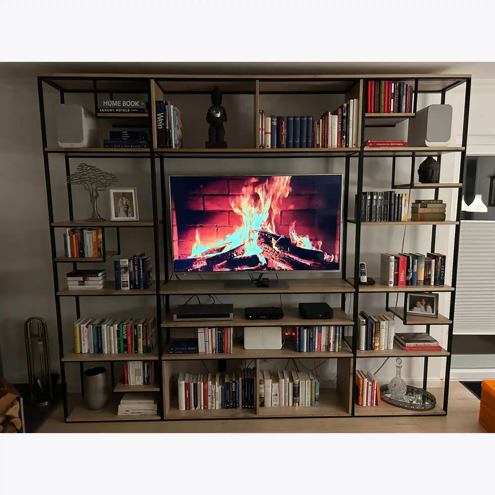 Regał loft dębowy industrialny do salonu pokoju DERA