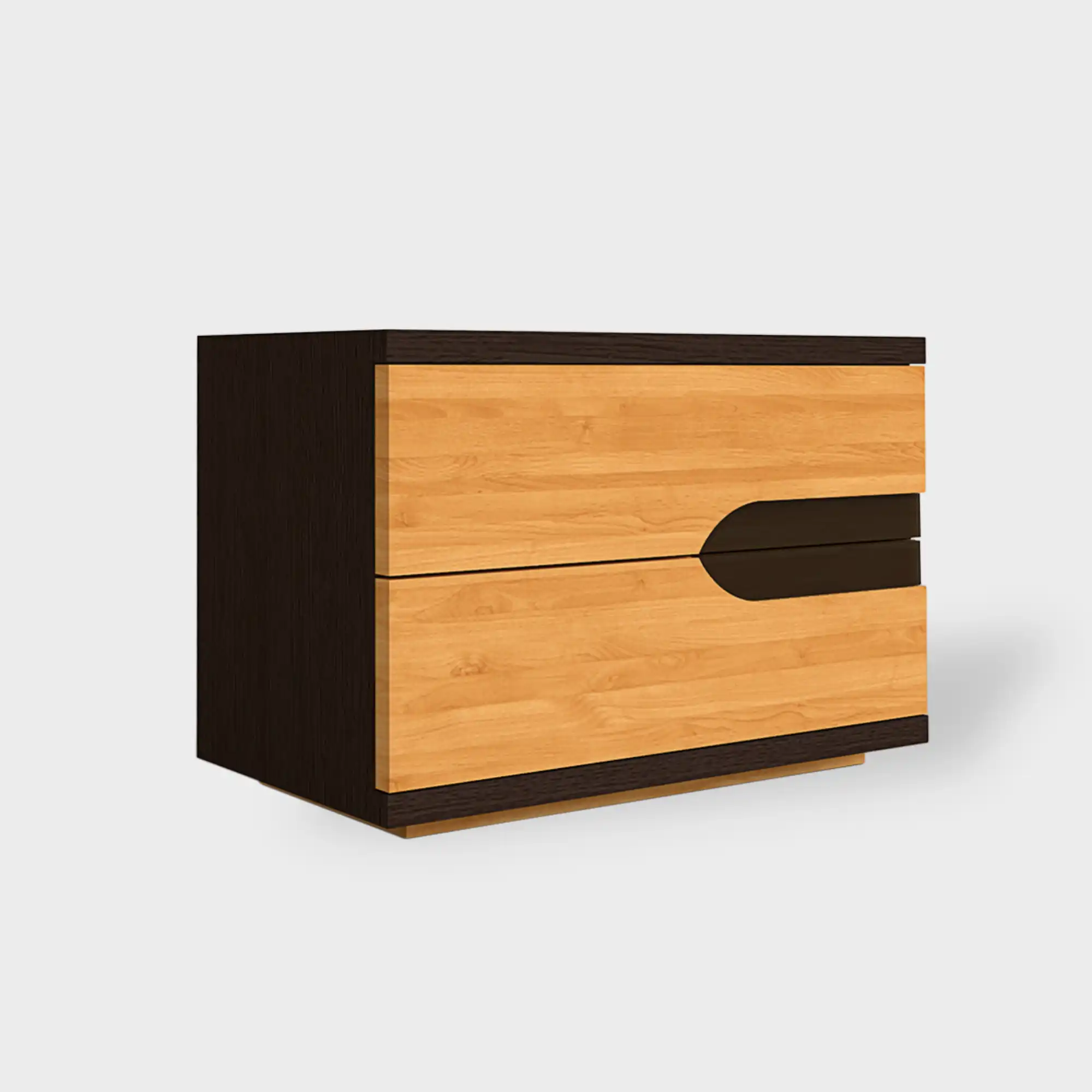 Szafka nocna z szufladami z litego drewna LAGOS to stylowy i praktyczny stolik nocny, który podkreśli styl każdej nowoczesnej sypialni. Designerska, drewniana szafka nocna wykonano z drewna litego dębowego oraz płyty laminowanej w kolorze ciemnego dębu. Wykonana z dbaniem o najdrobniejsze detale i idealnie łączy w sobie jakość z nowoczesnym design. Drewniana szafka nocna posiada dwie szuflady, które zapewnią wystarczająco miejsca na przedmioty codziennego użytku. Ponadto blat szafki nocne jest idealnym miejscem na budzik, ulubioną książkę oraz wszystkie inne rzeczy, które potrzebujesz mieć pod ręką. Szafka nocna z drewna LAGOS idealnie pasuje do niemal każdej sypialni. Sprawdź nasze pozostałe drewniane stoliki nocne.